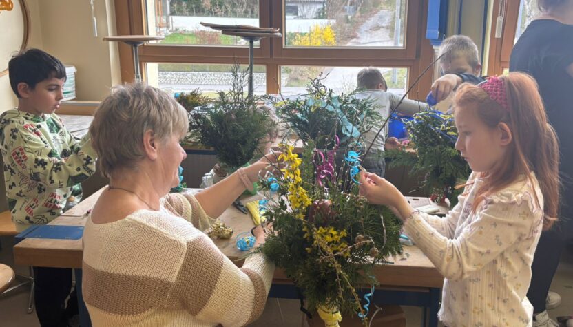 Mit großer Begeisterung und Kreativität arbeiteten die Schülerinnen und Schüler mit den gesammelten Naturmaterialien wie Buchsbaum, Palmkätzchen, Efeu und weiteren Zweigen. Dabei konnten sie nicht nur handwerkliche Fähigkeiten erlernen, sondern auch die Bedeutung dieses Brauchtums besser verstehen.